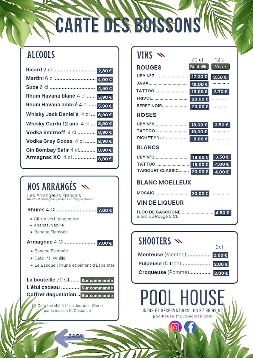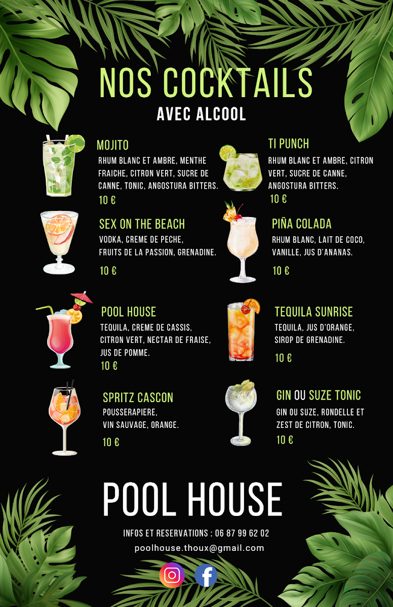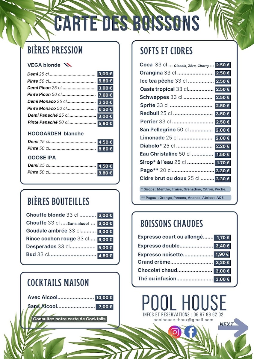 Le Pool House is perfect for those looking for a casual bite or a refreshing drink. The menu features delicious cocktails, artfully crafted by Franck, alongside beautifully presented tapas platters. Customers rave about the delightful summer terrace, where laughter and cheers fill the air, especially during exciting sports events.
